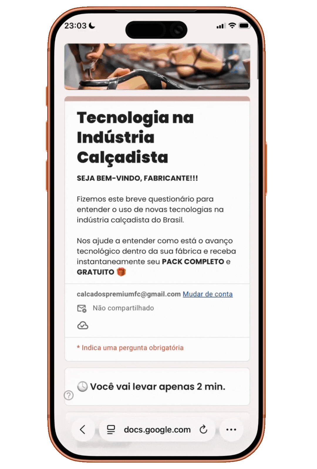 Suas respostas ajudam diretamente no desenvolvimento de novas tecnologias voltadas para o setor calçadista, permitindo criar ferramentas mais inteligentes, úteis e alinhadas aos desafios reais das fábricas.